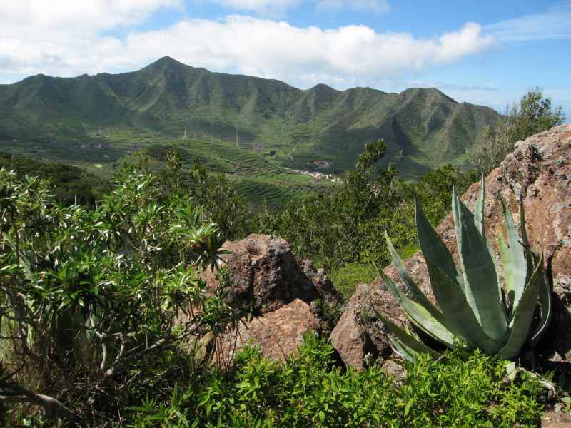 Der heutige Tag führt uns zu Fuß in das grüne und fruchtbare Orotava-Tal hier im Norden der Insel. Der Begriff „Tal“ ist irreführend, da es sich beim Orotava-Tal eigentlich um eine geneigte Ebene mit einer Fläche von ca. 10 x 11 Kilometer handelt, deren geologische Entstehungsgeschichte mit einem Tal nichts gemeinsam hat. Das Orotava-Tal wird im Westen wie eine Mauer durch die gewaltige „Ladera de Tigaiga“ abgeschlossen. Mit der „Ladera de Santa Ursula“ wird das Tal auch im Osten durch eine steil ansteigende Kante begrenzt. Es handelt sich dabei um die Abrisskanten einer gewaltigen Trümmerlawine, die das Erdreich auf der nach Norden abfallenden Ebene vor 540.000 bis 690.000 Jahren abrutschen ließ, und deren Ablagerungen heute am nördlichen Fuß der Insel in über 3500 m Wassertiefe liegen. Das Volumen der Orotava-Trümmerlawine wird auf bis zu 500 km³ geschätzt. Das Valle de la Orotava verläuft vom Meer bis auf eine Höhe von knapp 2.000 Meter bis fast zum Beginn der Las Cañadas mit dem Pico del Teide, dem mit 3.718 Meter höchsten Berg Spaniens. Die reizvolle Lage im Valle de Orotava hat schon vor 200 Jahren Reisende angezogen. Schon der berühmte Naturforscher und Botaniker Alexander von Humboldt war von der Pflanzenwelt Teneriffas begeistert. Nach ihm ist der Mirador Humboldt benannt, ein vielbesuchter Ausblick über das Tal.