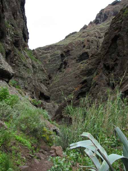 Üblicherweise wird die Schlucht hinunter gewandert. Am Ende der Schlucht, am Atlantikstrand, werden die vielen Wanderer mit Booten zurück nach Los Gigantes, einem Touristikzentrum im Westen der Insel gebracht. Wir haben uns jedoch schon zu Hause entschieden, die Strecke wieder bergauf zurück zu wandern. Und so machen wir uns nach kurzem Aufenthalt am Strand wieder auf den nun schon bekannten Weg. Wir stellen fest, dass es genauso interessant ist, die Schlucht in entgegen gesetzter Richtung zu durchwandern da wir auf diese Weise auch noch einmal andere Blicke genießen können und Dinge erkennen, die wir vor so nicht beobachten konnten.