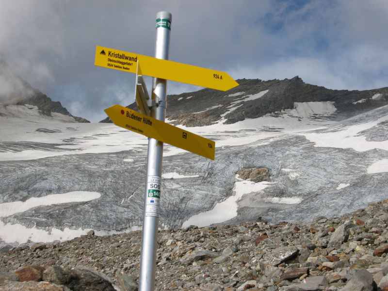 Das Schlemmen beim gestrigen ausgezeichneten Abendbüfett wird heute Morgen mit einem erstklassigen Frühstücksbüfett fortgesetzt. Mit übervollem Magen brechen wir gegen 8.00 Uhr zur Badener Hütte auf. Unser Weg führt nahe an der kleinen Felsenkapelle in unmittelbarer Nähe der Hütte entlang. Die Tafeln am Eingang der Kapelle weisen auf die vielen Verunglückten in diesem Gebiet hin. Das ist schon ein wenig bedrückend.