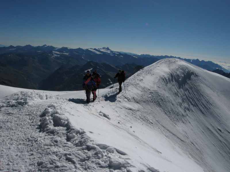 "Man muss dankbar sein, das schauen zu dürfen“ sagt Ernst. Damit spricht er uns aus der Seele. Auf dem letzten Stück des Weges ist es nicht mehr ganz so einsam. Die vielen Seilschaften, die vom Defreggerhaus aufsteigen, ziehen auch hier entlang.