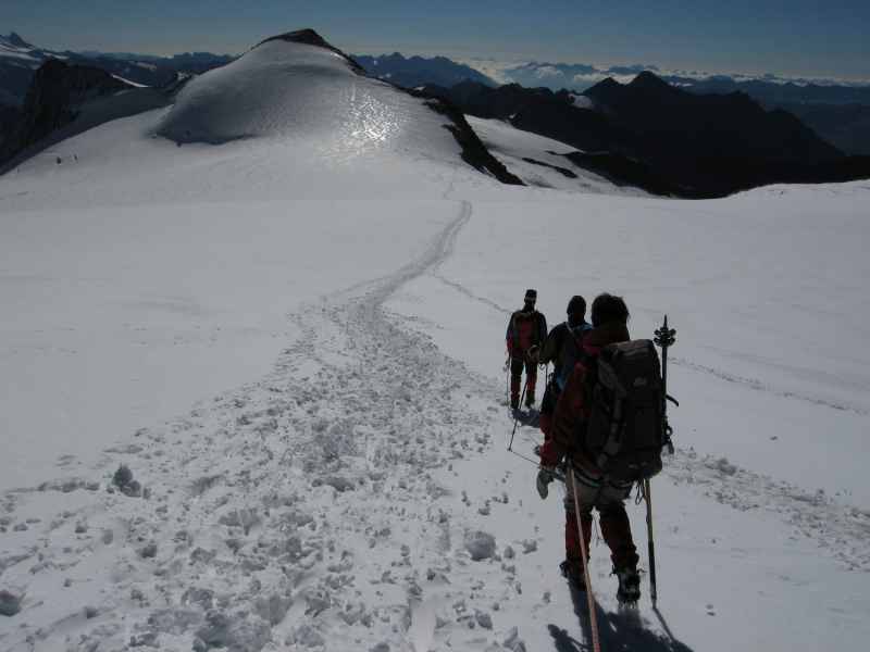 Die anderen haben sich gegen die Tour entschieden, da sie keine Ausrüstung für den Klettersteig mit sich führen und sie aufgrund der Windverhältnisse die Kletterei ohne Sicherung nicht riskieren wollen. Eine zweite Möglichkeit zum Gipfel führt über den Gletscher und dieser verbietet sich ohne entsprechende Ausrüstung für uns alle von selbst.