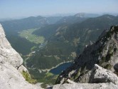 Über den Linzer Weg passieren wir wieder viele Stellen mit Versteinerungen. Teilweise liegen die Fossilien hier in mehrere Meter dicken Schichten. Über seilversicherte Kletterpassagen geht es nun weiter. Eine Etappe die so richtig Spaß macht. Zwischen den Felsen erblicken wir den Gosausee - unser Tourenziel für den nächsten Tag. Im Schatten der uns umgebenden Berge bläst uns ein heftiger und kalter Wind entgegen. Eine Gams springt in atemberaubender Geschwindigkeit über die Felsen. Faszinierend mit welcher Sicherheit diese Tiere unterwegs sind und ihren Tritt in diesem nachrutschenden Gestein finden. Über weitere Kletterstellen gelangen wir nun hinauf zum Kesselegg. Hier legen wir eine etwas längere Pause ein. Auf dem Reißgangkogel haben wir noch einmal einen wunderbaren Blick auf den hinteren Gosausee bevor wir über den Grat auf die andere Seite des Kamms wechseln.
