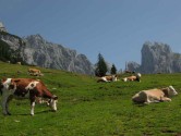 Etwas zu spät, wir wollen noch auf Annette warten die es gestern nicht mehr geschafft hat zur Hütte aufzusteigen und daher im Auto geschlafen hat, machen wir uns auf in Richtung Ramsauer Klettersteig oder eventuell auch die Scheichenspitze. Aus beidem wird nichts, denn der Wind ist einfach schon zu stark. Heftige Böen und die drohenden dunklen Wolken verhindern unsere Pläne. So machen wir nur eine kleine Wanderung um den Eselstein herum. Einige Gruppenmitglieder besteigen noch den Sinabel mit einer Höhe von 2.340 Metern