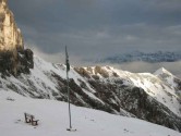 Gegen Mittag zeiht die Kaltfront herein und bringt 6 cm Neuschnee. Wir verbringen einen langen Nachmittag bei Tee, Kaffee und Kuchen. Am späten Nachmittag reißt die Wolkendecke in beeindruckenden Wolkenspielen auf und bietet phantastische Aussichten auf die nun schneebedeckten Schladminger Tauern.