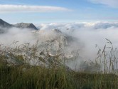 Nachmittags wandern wir eine Stunde hinunter zum Wiesberghaus und bitten das verdutzte Personal um auf erst einmal um heiße Schokolade, Kaffee und Kuchen. Anscheinend hat hier bei diesem Wetter niemand mit Gästen gerechnet. Nach dieser Stärkung machen wir uns wieder auf den Heimweg zur Simonyhütte und genießen nun doch einige Sonnenstrahlen, die von den Wolken freigegeben werden. Das Abendessen fällt heute eher wieder spärlicher aus. Aber morgen soll der Versorgungshubschrauber kommen. Aber da sind wir ja schon wieder auf dem Weg. Zum späten Nachmittag hin reißen die Wolken doch noch etwas auf und wir genießen die schöne Stimmung vor der Hütte.