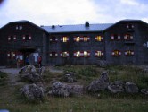 Noch während wir dem Sonnenuntergang zusehen, kommen Kletterer aus den Routen an der Hütte vorbei und machen sich noch auf den Weg zurück zum in der Nähe gelegenen Parkplatz der Liftstation. Wir genießen einen herrlichen Sonnenuntergang bei sehr angenehmen warmen Temperaturen auf der Hüttenterrasse – ein Umstand, der auf unseren Hüttentouren der letzten Jahre fast noch nie vorgekommen ist.