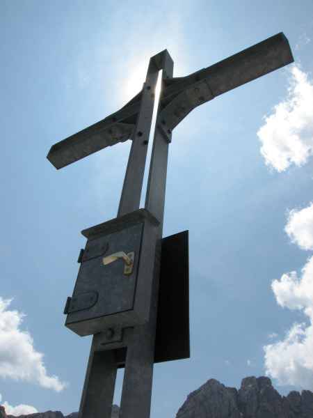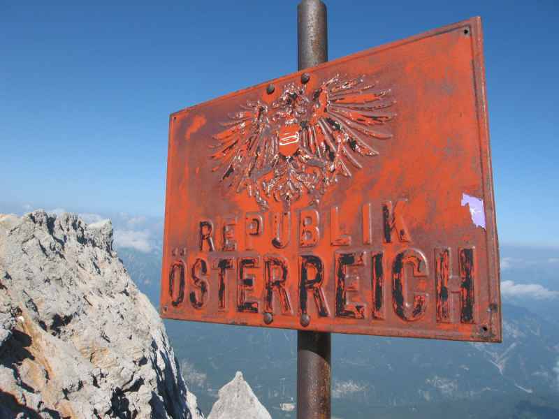 Hier oben ist eine völlig andere Welt – aber das haben wir ja gewusst. An schönen Tagen kommen ca. 6.000 Besucher mittels der Seilbahnen hier hoch. Ein reger Betrieb herrscht hier oben. Das Gipfelkreuz ist stark umlagert – aber auch wir wollen die letzten Meter zum Gipfel zurücklegen – Wir haben uns das schließlich verdient. Allerdings fragt man sich tatsächlich, bei der offensichtlichen Überforderung und der schlechten Ausrüstung einiger Touristen, warum nicht mehr passiert. An einigen Schlüsselstellen geht es teilweise nicht mehr vor und nicht zurück. In Deutschlands höchstem Biergarten gönnen wir uns Weißbier, Cappuccino und Marillenknödel.