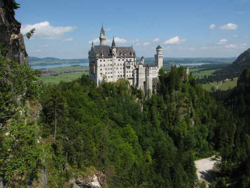 Dabei hatte der Märchenkönig einst den Wunsch ausgesprochen, das Schloss nach seinem Tode zu sprengen um seine Träume nicht der Öffentlichkeit preis zu geben. Der Bau wurde ab 1869 für den bayerischen König Ludwig II. als idealisierte Vorstellung einer Ritterburg aus der Zeit des Mittelalters errichtet. Neuschwanstein ist das berühmteste der Schlösser Ludwigs II. und eine der bekanntesten Sehenswürdigkeiten Deutschlands. Es wird jährlich von mehr als 1,3 Millionen Touristen aufgesucht. Mit dem Bau des Schlosses wurde 1869 begonnen. Die Wünsche und Ansprüche Ludwigs II. wuchsen mit dem Bau ebenso wie die Ausgaben und die Entwürfe und Kostenvoranschläge mussten mehrfach überarbeitet werden. König Ludwig der II. hatte bis zu seinem Tode nicht einmal ein Jahr in dem Schloss gelebt. So war anstelle des großen Thronsaales ursprünglich nur ein bescheidenes Arbeitszimmer geplant und vorgesehene Gästezimmer wurden aus den Entwürfen wieder gestrichen, um Platz für einen Maurischen Saal zu schaffen, der aufgrund der ständigen Geldknappheit nicht realisiert werden konnte.
