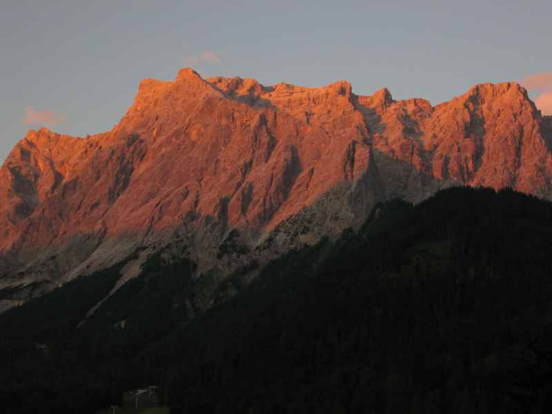Den heutigen Tag wollen wir uns der Zugspitze widmen – allerdings in zwei Gruppen. Dagmar, Wolfgang und ich wollen heute mit der Ehrwalder Zugspitzbahn auf den Gipfel der Zugspitze fahren und dann zu Fuß über das Zugspitzplatt, Knorrhütte und das sogenannte Gatterl absteigen. Annette, Heidrun, Gila und Andrea werden heute im Laufe des Tages zur Wiener-Neustädter-Hütte aufsteigen und dort nächtigen um den morgigen Aufstieg zur Zugspitze zu verkürzen. Denn für morgen wird für alle die Besteigung der Zugspitze anvisiert.