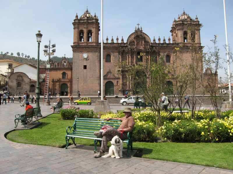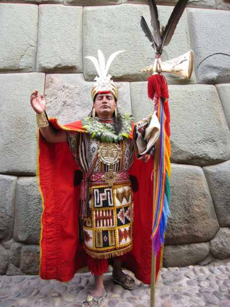 Fremd und faszinierend zugleich. Die Stadt nimmt uns mit ihrer Atmosphäre sofort gefangen. Durch das, für uns noch fremden Straßenwirrwarr führt uns Mauro, vorbei an beeindruckenden Bauten, in das Zentrum des ehemaligen Inkareichs. Der Sage nach wurde die Gegend um Cuzco in grauer Vorzeit von den Tampus, einem Volk der Quechua-Indianer, bewohnt. Sie sollen die ersten Menschen gewesen sein – älter seien nur die Götter. Um das Jahr 1200 herum gründete der erste Inka Manco Cápac, der Sohn der Sonne, mit seiner Schwester Mama Ocllo die Stadt. Genauere Überlieferungen gibt es erst vom 9. Inka, Pachacútec Yupanqui. Während seiner Regierungszeit von 1438 bis 1471 erweiterte er das Inkagebiet in den Zentralanden vom Titicacasee bis nach Junín. Das Reich wurde nach den vier Himmelsrichtungen aufgeteilt, seine Flagge war die Regenbogenfahne und Cuzco entwickelte sich zum wirtschaftlichen und kulturellem Zentrum. Das Wort Cuzco entstammt dem Quechua und bedeutet so viel wie „Nabel der Welt“.