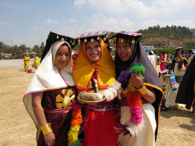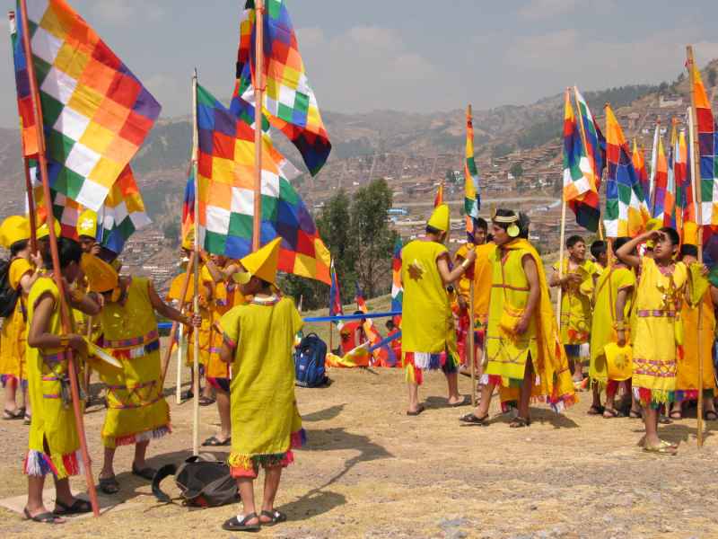 Heute unternehmen wir in der näheren Umgebung von Cuzco eine kleine Wanderung zu bedeutenden Stätten der Inka. Unser erstes Ziel ist die Ruine der Inkafestung Sacsayhuamán. Sie ist eine der bedeutendsten Sehenswürdigkeiten aus der Inkazeit und liegt in unmittelbarer Umgebung von Cuzco. Wir haben heute besonderes Glück, denn zweimal im Jahr finden hier Feste der einheimischen Bevölkerung statt. Das Wichtigste ist das Alljährlich am 24. Juni zur Feier der Sonnwende stattfindende farbenprächtige Festspektakel Inti Raymi. Dieses bekannte Fest zieht neben dem peruanischen Präsidenten auch immer tausende Zuschauer an. Das zweite Fest ist ein Initiierungsfest, dem wir heute beiwohnen dürfen. Bei diesem Fest zeigen Mädchen und Jungen, die sich farbenfroh zu Recht gemacht habe, was sie traditionell in ihrer Kindheit gelernt haben. Dieses Fest wird von der einheimischen Bevölkerung und ist nicht als Touristenattraktion gedacht. Aus dem ganzen Umland sind die Menschen angereist und sitzen auf den umgebenden Felsen, um sich die tänzerischen Darbietungen ihrer Kinder anzuschauen. Beeindruckend ist die offensichtliche Freude, mit der diese Kinder teilnehmen. Es ist eine ganz wunderbare Stimmung - die aufgeregten, lachenden Kinder, die Musik, die beeindruckenden Ruinen. Unserem Wunsch, einfach nur hier zu sitzen und ein wenig teilhaben zu können an diesem einnehmenden Ereignis, können wir leider nicht nachgeben und bedauernd folgen wir Mauro und seinen Erklärungen, begleitet von den Klängen der Musik.