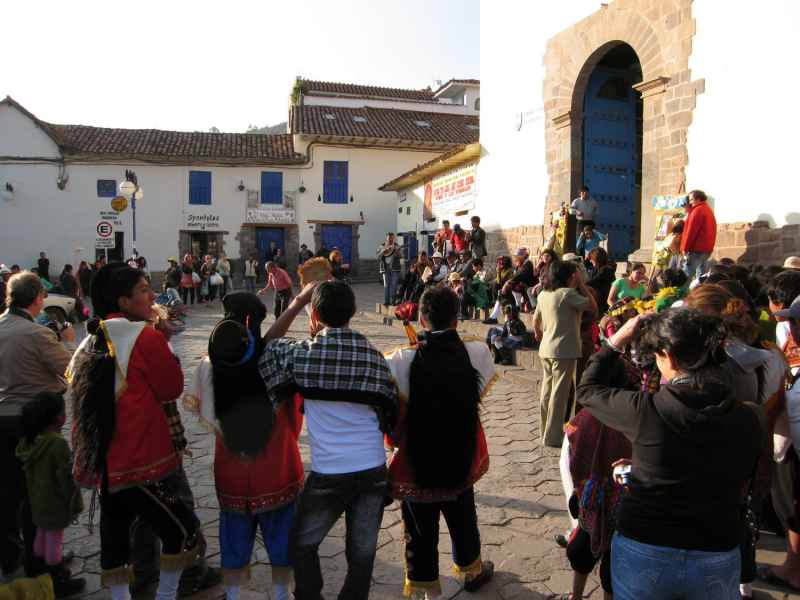 Wieder in Cuzco angekommen haben wir Gelegenheit einem Fest von Einheimischen beizuwohnen. Hier wird der traditionelle Peitschentanz aufgeführt. Bei diesem Tanz peitschen sich die Darsteller gegenseitig und erinnern somit auf althergebrachte Weise an die Tradition der Tierhaltung.