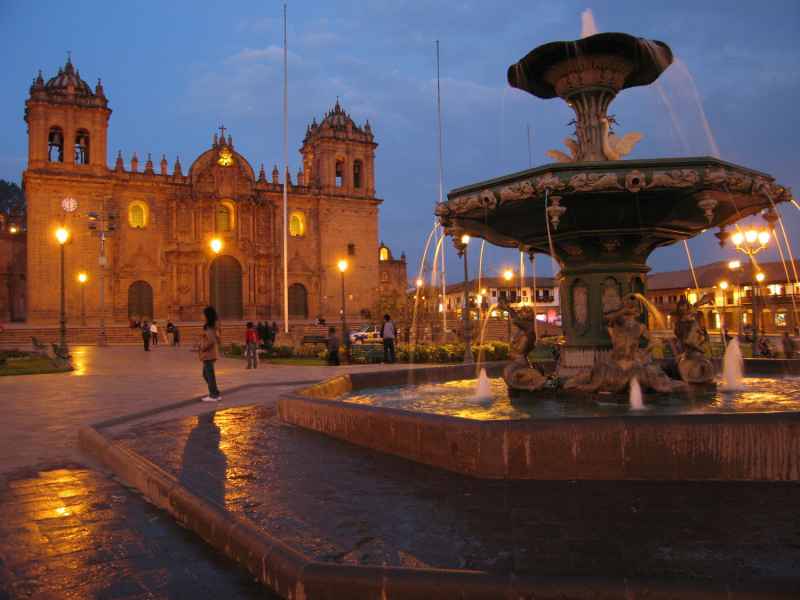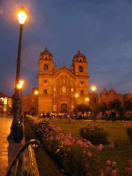 Nach dem wir wieder im Hotel angekommen sind, nutzen Dagmar und ich noch die freie Zeit bis zum Abendessen und sehen uns noch einmal in Cuzco um. Die früh einsetzende Dunkelheit lässt die Plaza de Armas und die umliegenden Gebäude in einem magischen Licht erstrahlen. Wir genießen diese besondere Stimmung im Abendlicht und man spürt den Atem der vergangenen Zeiten. In der Iglesia la Merced wohnen wir einer Messe bei und haben so einen Ruhepol an diesem ereignisreichen Tag für uns gefunden.