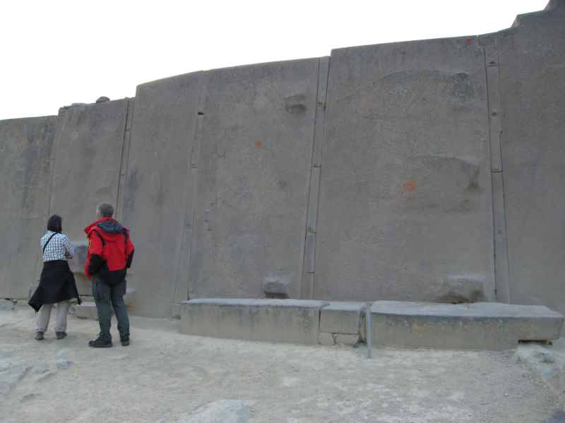 Wir gelangen nun an die Außenmauer des Sonnentempels die im Winkel von 13 Grad, 7 Minuten und 54 Sekunden geneigt ist. Die Neigung steht damit im direkten Verhältnis zum Äquator.
