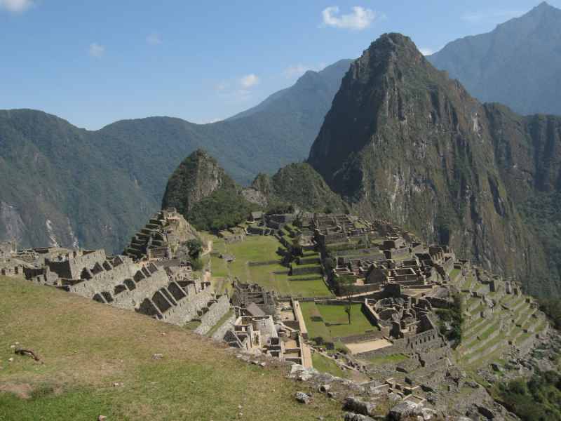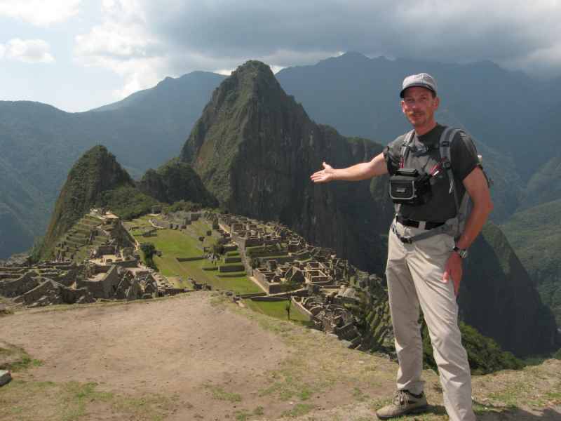 Heute führt uns unser Weg nach Machu Picchu – sicherlich ein Highlight unserer Reise. Mit dem Zug „Vistadome“ fahren wir von Ollantaytambo nach Aguas Calientes, das in üppiger Urwaldvegetation liegt. Von hier geht es dann mit Kleinbussen 400 Höhenmeter hinauf zur sagenumwobenen Inka-Stadt. Das Wort „Machu Picchu“ kommt aus dem Qechua und bedeutet so viel wie „alter Berg“. Nach einigen Metern empor entlang ausgedehnter Terrassenlagen liegt es plötzlich vor uns – Machu Picchu. Für mich ein sehr emotionaler Moment. Schon als Junge habe ich mich für alte Kulturen interessiert und somit gehört diese Stadt und dieser Blick zu meinen Traumzielen. Nur war ich immer davon überzeugt dass dieser Traum nicht in Erfüllung gehen würde – und nun stehe ich hier. Während wir die Blicke an einem Punkt in der Terrassenanlage genießen und versuchen die Eindrücke mit jeder Faser unseres Körpers aufzunehmen, liefert Mauro uns nicht nur historische Informationen sondern bietet uns auch tiefe Einblicke in die Seele seines Volkes .