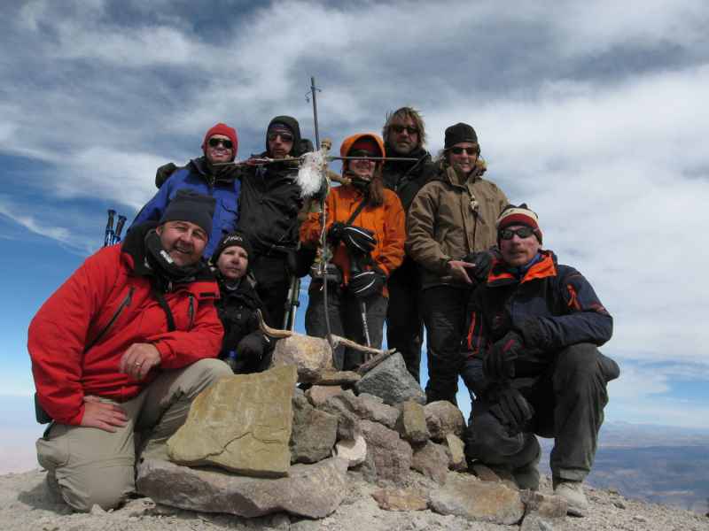 Am Gipfel angekommen machen wir endlich die ersehnte Pause und wir genießen nach den Mühen und Strapazen eine grandiose Aussicht. Wir haben einen weiten Blick über die Wüste hinweg zumal fast 3.700 Höhenmeter zwischen dem Gipfel und unserem Ausgangspunkt Arequipa liegen. Schon ein wenig stolz beglückwünschen wir uns gegenseitig und machen Gipfelfotos und Aufnahmen von der Umgebung. 7 von 14 Teilnehmern haben den Gipfel erreicht. 7 haben aus unterschiedlichen Gründen wie zum Beispiel durch Krankheit und konditionellen Problemen das Unternehmen abbrechen müssen.