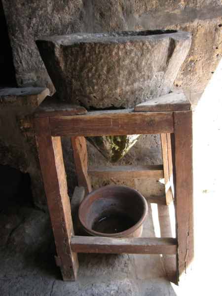 Vor uns taucht der Begräbnis- oder Totenfelsen auf, der die Form eines Altars besitzt. Links und rechts sind Stufen in den Fels geschlagen auf die sich die trauernden knien konnten. Am Stadttor oder auch dem Heiligen Tor erklärt Mauro uns die Funktionsweise dieser Einrichtung. Die Befestigungen, Steinbolzen und –Zapfen für das Zugtor sind gut zu erkennen.