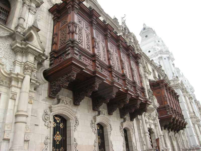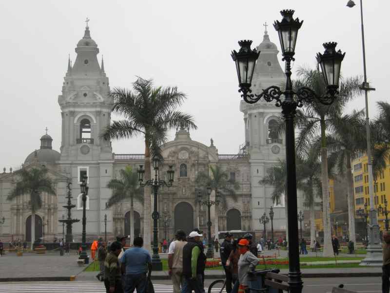 Unser nächstes Ziel ist die Altstadt von Lima. Rund um den Plaza Major befindet sich ein schönes Stück Peruanischer Geschichte. In der Mitte des Platzes kann man einen Bronzebrunnen von 1650 sehen. Von hier aus werden alle Kilometerentfernungen des Landes angegeben. Zu einer der wichtigsten Sehenswürdigkeiten der Altstadt zählt ohne Zweifel die Kathedrale von Lima, einer der berühmtesten Kirchen Südamerikas. Bei der bekannten Kathedrale handelt es sich um ein riesiges barockes Bauwerk, welches Mitte des 16. Jahrhunderts erbaut wurde. Nach einem Erdbeben Ende des 18. Jahrhundert wurde die Kathedrale stark zerstört und in mühsamer Kleinstarbeit anschließend wieder rekonstruiert. Die Restauration verlieh der Kathedrale ihr heutiges Aussehen. Das Kunstwerk aus der Kolonialzeit vereint barocken und klassizistischen Stil sowie Elemente aus der Renaissance. Im Inneren der Kathedrale findet man herrlich verzierte, vergoldete Altäre, eine handgeschnitzte Chorbestuhlung und eine Sammlung wertvoller Skulpturen und Gemälde des 17. und 18. Jahrhunderts. Francisco Pizarro, der Gründer von Lima, soll in einem Glassarg in der Kathedrale begraben sein.