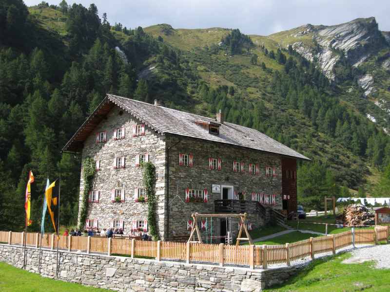 Wir gelangen gegen 14:00 Uhr beim Kalser Tauernhaus an und beschließen eine kleine Stärkung zu uns zunehmen. In den Jahren 1928 – 1930 erbauten Kalser Bergführer, als Stützpunkt für ihre Glocknertouristen, das Kalser Tauernhaus.