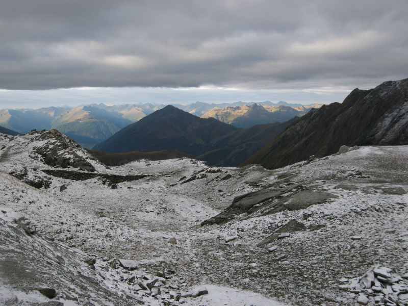 Das Wetter vereitelt leider unsere Pläne für den folgenden Tag. Über Nacht hat es zu regnen und zu Gewittern begonnen und es regnet auch fast noch den ganzen folgenden Tag. Als es gegen Mittag etwas aufklart nutzen einige von uns die Gelegenheit den Medelzkopf mit 2.760 Metern und den Tauernkogel mit 2.674 Metern zu besteigen.