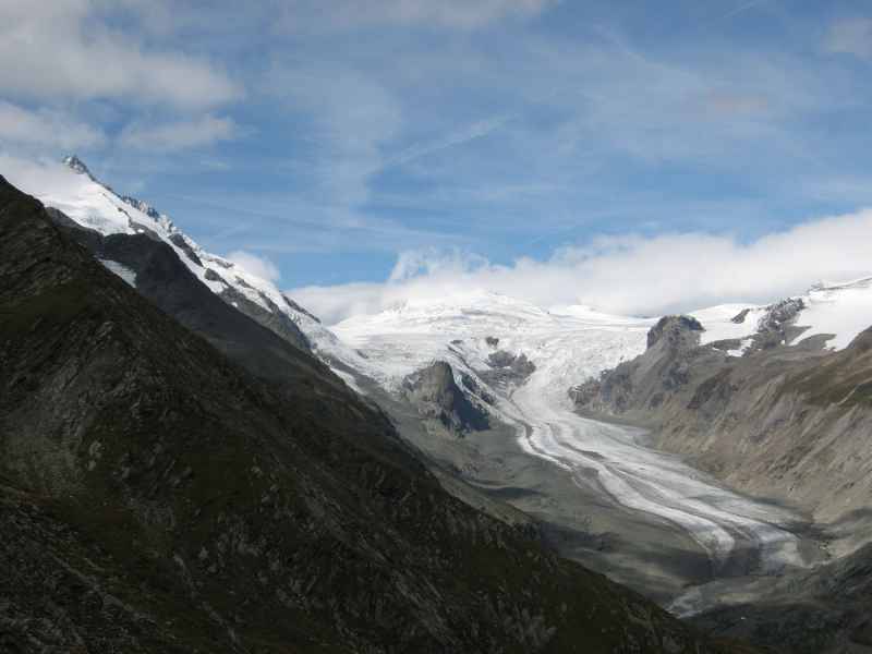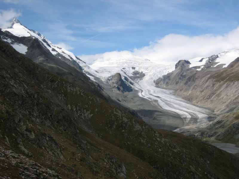 Im Vordergrund hält die Pasterze unsere Blicke gefangen. Die Pasterze ist mit ihrer einer Länge von 7,5 km und einer Fläche von 18,5 km² der größte Gletscher der Ostalpen.
