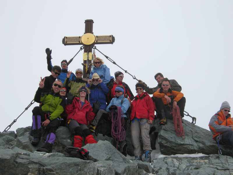 Geschafft!! Wir schlagen um 13:20 Uhr am Kreuz des Großglockners in 3.798 Metern an und beglückwünschen uns gegenseitig zu diesem tollen Erlebnis. Auch wenn die Wolkendecke nun komplett zugezogen ist – was zählt, ist der Moment!!