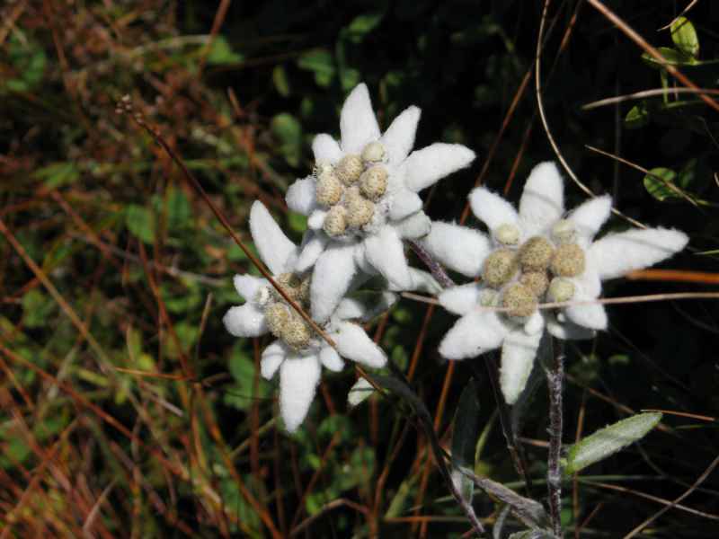 Über den Schernerskopf auf 3.043 Metern geht es zur Kreuzspitze auf 3.164 Meter. Auch hier ist der Weg zum Teil seilversichert, birgt aber keine Schwierigkeiten. Sogar in dieser kargen Gegend finden sich blühende Farbtupfer wie das Leinkraut. Hier in der Höhe ist es sehr kalt, die Sonne wird häufig verhüllt. Die Wolken ziehen - nach Norden geben sie uns keine Blicke frei, nach Süden Richtung Tal und Hütte lassen sie immer mal wieder kurze Blicke zu.