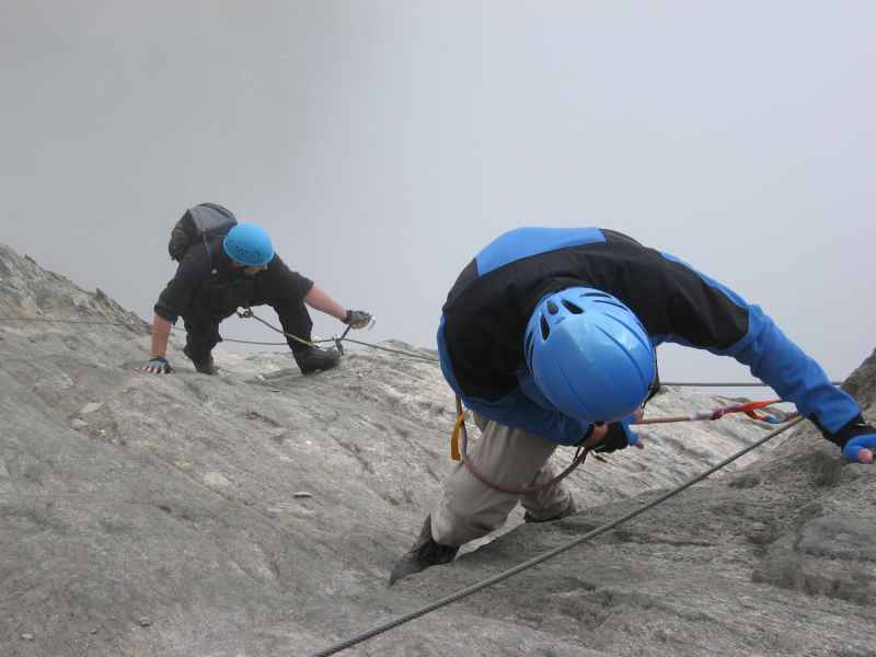 Die anderen haben sich gegen die Tour entschieden, da sie keine Ausrüstung für den Klettersteig mit sich führen und sie aufgrund der Windverhältnisse die Kletterei ohne Sicherung nicht riskieren wollen. Eine zweite Möglichkeit zum Gipfel führt über den Gletscher und dieser verbietet sich ohne entsprechende Ausrüstung für uns alle von selbst.