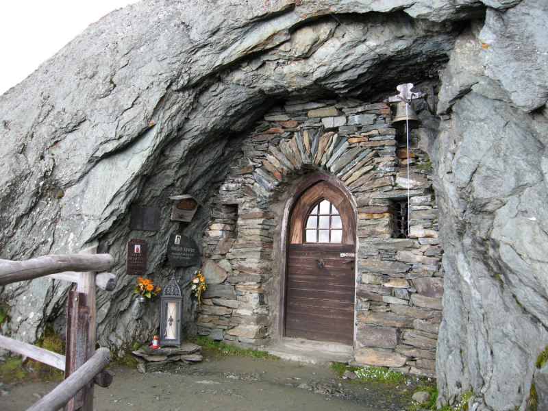 Das Schlemmen beim gestrigen ausgezeichneten Abendbüfett wird heute Morgen mit einem erstklassigen Frühstücksbüfett fortgesetzt. Mit übervollem Magen brechen wir gegen 8.00 Uhr zur Badener Hütte auf. Unser Weg führt nahe an der kleinen Felsenkapelle in unmittelbarer Nähe der Hütte entlang. Die Tafeln am Eingang der Kapelle weisen auf die vielen Verunglückten in diesem Gebiet hin. Das ist schon ein wenig bedrückend.