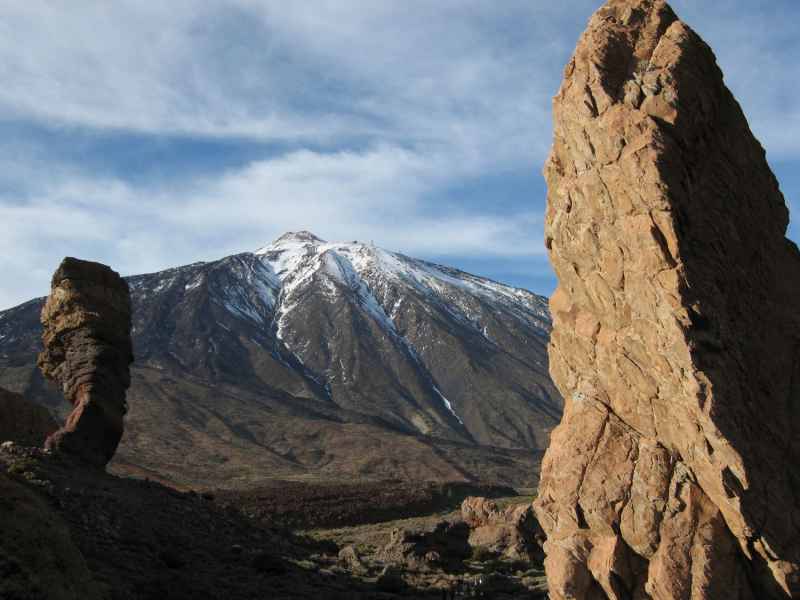 Der Pico del Teide gehört mit zu den beliebtesten Touristenattraktionen der Kanaren. Die Spitze des Berges erreicht 3.718 m über dem Meeresspiegel. 1789 fand die letzte Eruption statt. Damit ist Teneriffa die dritthöchste Vulkaninsel der Erde mit dem größten Vulkankrater der Welt. Die „Caldera de las Cañadas“ misst 17 km im Durchmesser. Es handelt sich um einen Einbruchskrater, der mit der Zeit durch Erosionsmaterial eine Ebene ausgebildet hat. Es ist das einzige subtropische Hochgebirge Europas. Das gut 19.000 ha umfassende zentrale Gebiet wurde 1954 zum Nationalpark erklärt. Das Besondere am Teide ist, dass dieser Vulkan nach wie vor nicht als erloschen gilt. Im Jahre 1798 hat es beispielsweise einen Ausbruch des Pico Viejo (auf Deutsch "alter Gipfel") gegeben. Oben auf dem "Dach" des Teide strömt noch immer schwefelhaltiges Gas aus dem Krater. Auffallend ist das kontrastreiche Farbenspiel der unterschiedlichen geologischen Gesteinsarten, welches von rötlichen, braunen bis hin zu graugelben Elementen reicht.