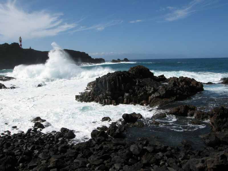 Wir möchten nun auch noch die Westspitze Teneriffas erkunden und fahren daher in das Teno-Gebirge zum Leuchtturm Faro de Teno. Der Weg dahin führt über Los Silos und ist ab Buenavista del Norte nur bei gutem Wetter befahrbar. Bei Starkregen ist die Straße gesperrt, da Gesteine auf die Fahrbahn gelangen können. Unser erstes Ziel ist der Faro de Teno - der umrahmt von scharfkantigen Felsen - den Schiffen den Weg weist.