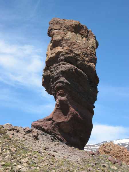 Nach der Wanderung fahren wir nun auf der TF21 zurück nach Puerto de la Cruz. Hierbei durchqueren wir die 17 km durchmessende Caldera mit ihrem abwechselungsreichen Farbspiel und interessanten Formen. Die Aussicht an der mitten durch den Park sich ziehende Landstraße ist sehr vielfältig und atemberaubend. Der Name Teide leitet sich aus “Echeide” ab, was in der Guanchensprache „Hölle“ bedeutet und auf die vulkanische Tätigkeit verweist. Wir kommen zu den Gesteinsformationen der „Los Roques“. Diese Formationen sind ein wahrer Besuchermagnet und der Trubel lässt uns nicht allzu lange verweilen.