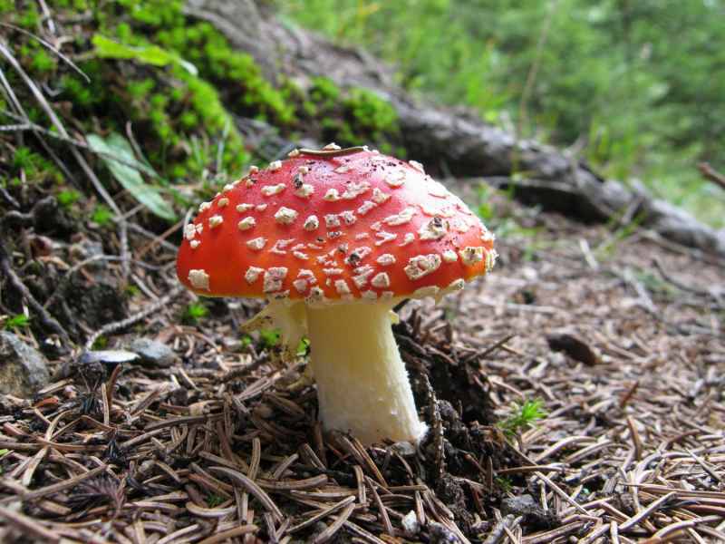 Das Alpenwetter ließ dieses Jahr bisher sehr zu wünschen übrig und die Wetterprognosen für unsere Tourenwoche sind sehr uneinheitlich. Hoffen lässt uns aber der Wetterbericht des Deutschen Alpenvereins, der für die nächsten Tage ein Azorenhoch und damit stabiles gutes Wetter prognostiziert. Von der Feuchtigkeit der letzten Tage und Wochen haben offenbar die Pilze profitiert. Wir erleben heute und auch in den folgenden Tagen einen Artenreichtum und eine Farbvielfalt an Pilzen wie sie bisher noch keiner von uns erlebt hat. Immer an einem Berghang entlang führt unser Weg durch einen Wald mit interessantem Baumbewuchs. Die Flechten weisen auf gute, saubere Luft hin.