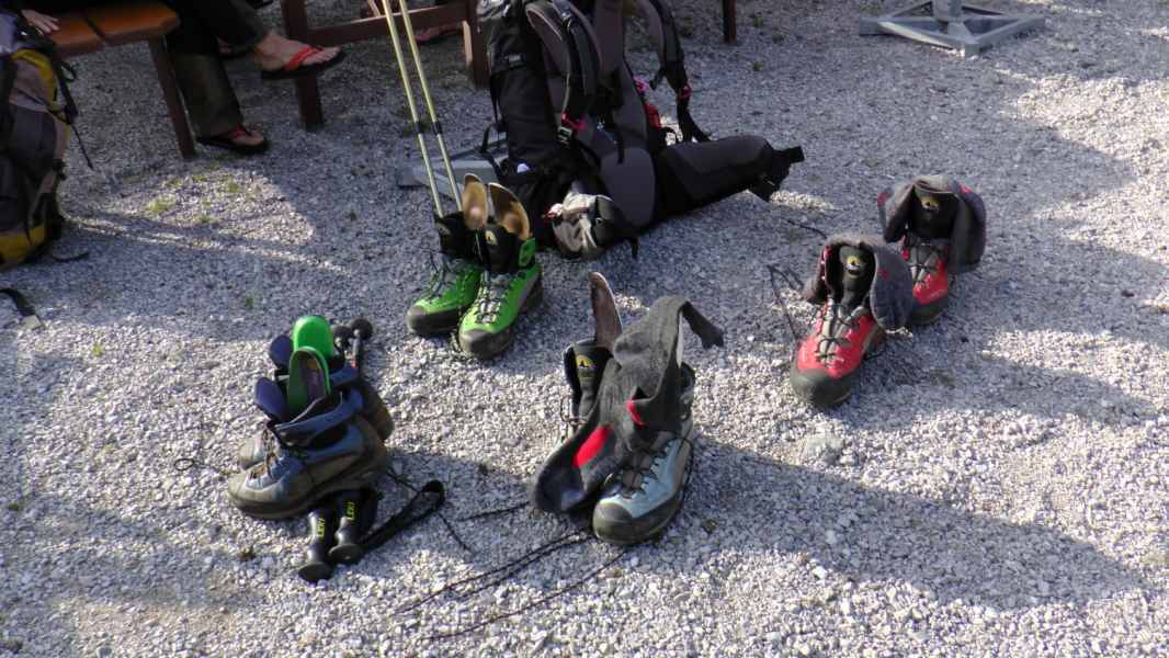 Starker Regen lässt uns ein wenig schneller gehen, so dass wir die Hütte nun schon am frühen Nachmittag erreichen und es uns bei Cappuccino und Kaiserschmarren gut gehen lassen. Am Abend macht Dagmar die Entdeckung, dass sich die Sohle Ihres Bergstiefels ablöst. An eine schnelle Reparatur mit Kleber ist nicht zu denken und so beschließt sie, am nächsten Tag abzusteigen und sich in einem der Talorte neue Bergstiefel zu kaufen. Anschließend will sie dann mit uns auf der Bielefelder Hütte wieder zusammen kommen. Für den morgigen Abstieg muss aber erst einmal eine Notreparatur mit Tape reichen.