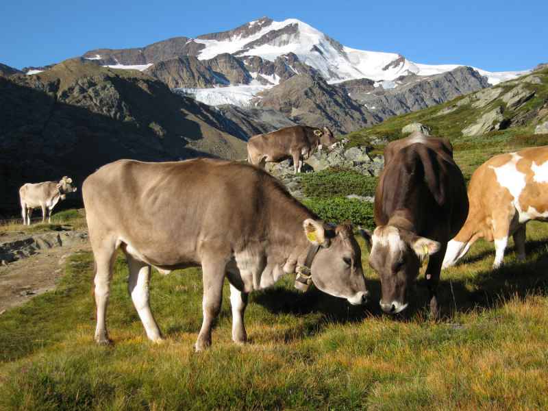 Für Morgen, den Donnerstag, ist schlechteres Wetter vorhergesagt. Die Wetterprognose trifft dann auch tatsächlich so ein und es nieselt den ganzen Tag mal mehr, mal weniger stark. Nichtsdestotrotz beschließen wir, am morgigen Tag, die Vordere Rotspitze mit ihren 3.023 Metern Höhe zu besteigen. Es wird ein ständiger Wechsel der Oberbekleidung. Mal Regenjacke an – mal Regenjacke aus. Erst bei der Einkehr in der Marteller Hütte werden wir aufgrund der Gastfreundlichkeit und der leckeren Speisen wieder warm. Als wir zur der Zufallhütte zurückkommen, werden aufgrund der Wetterprognose für Morgen, den Freitag, gerade die Kühe von den oberen Hängen nach unten getrieben, denn für das Wochenende ist der große Almabtrieb geplant.