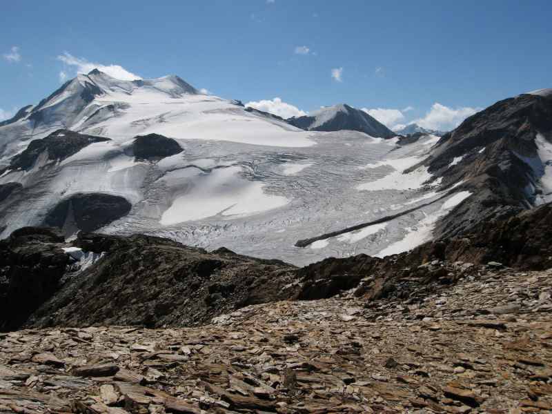 Der heutige Tag beginnt mit einem wolkenverhangenen Himmel. Als Tagesprogramm ist heute die Besteigung der Madritschspitze vorgesehen. Gegen 8:15 Uhr starten wir an der Zufallhütte. Das Madritschtal steigt nur mäßig an. Über einen gut sichtbaren aber nur wenig markierten Weg steigen wir dem Talschluss entgegen.